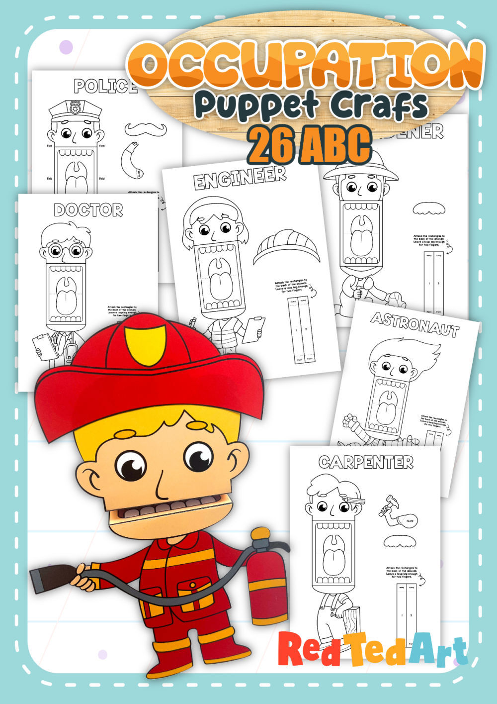 26 Fun and quirky Careers Finger Puppets - Coloring Pages to print, cut and create a simple assembly. A complete set of Occupations exploring the ABC! From Engineers, to Musicians, to Vets and more! All the popular children's "When I Grow Up" careers plus some extra to make up a complete ABC of Jobs!