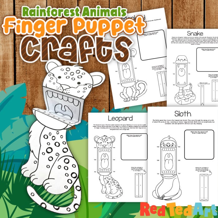 Please note: these are FINGER PUPPETS and not hand puppets. If you print in larger scale you can use them as hand puppets too! This jungle or rainforest set of animals, includes: