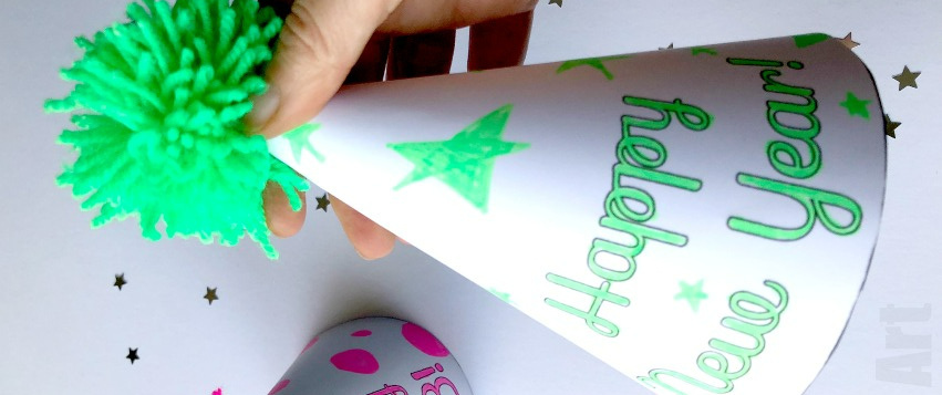 A simple "Happy New Year" Party hat to print, color and assemble.