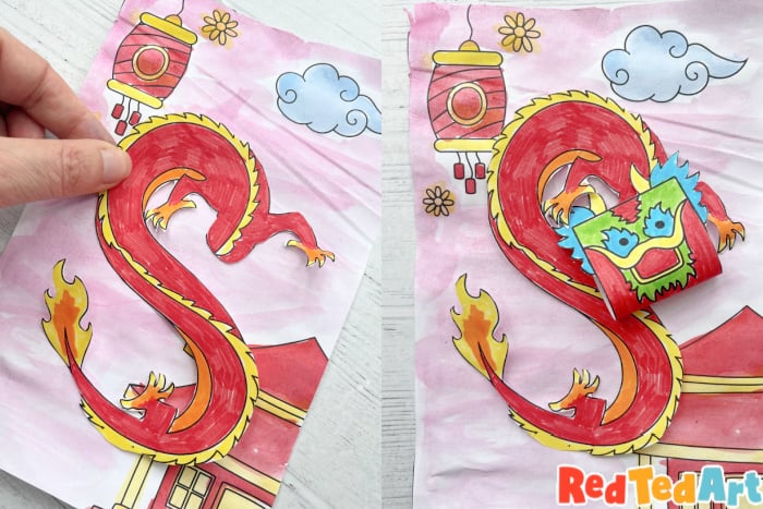 Students can then practice their fine motor skills whilst cutting out the dragon shape.