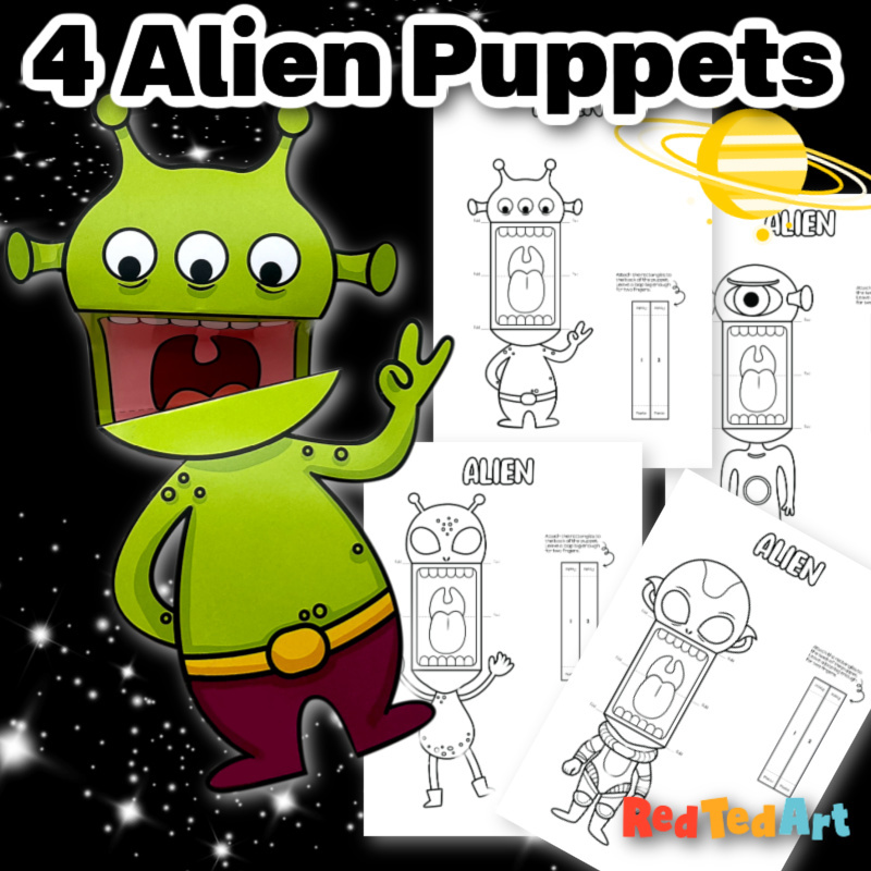 Choose from four different easy to assemble Alien Hand Puppets! A fun little 3d project that encourages imaginative play and discussion.
